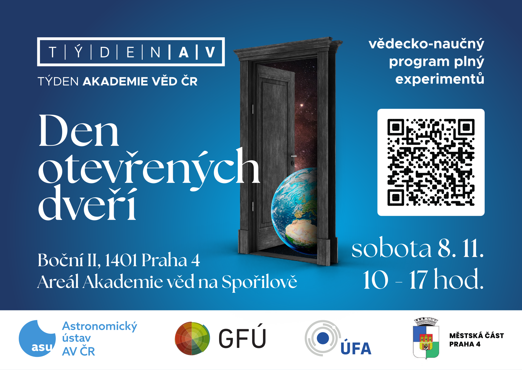 V sobotu 8. listopadu od 10 do 17 hodin je pro veřejnost otevřen spořilovský areál ústavů AV ČR v rámci Týdne Akademie věd ČR. Na vaši návštěvu se těší Astronomický ústav, Geofyzikální ústav a Ústav fyziky atmosféry. Příchozí se mohou těšit na ohnivé tornádo, modely kosmických sond nebo také na pozorování Slunce, zemětřesení a výbuchy sopky. Současně budou probíhat zajímavé přednášky. Areál je částečně bezbariérový s možností občerstvení. Více: www.ufa.cas.cz/tyden-akademie-ved.